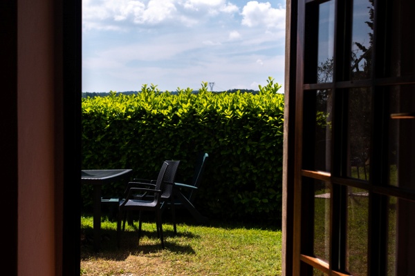 Appartement für 4 Personen ( ein Zustellbett für 5 Personen möglich), auf der Depandance auf der ersten Etage. Betreten der Wohnung Sie das Esszimmer (mit Kamin) und eine Küche finden ; befinden sich 2 Schlafzimmer und ein Badezimmer ( im Jahr 2016 erneuert ) . Die Wohnung hat einen eigenen Garten in der Nähe des Schwimmbad Bereich.